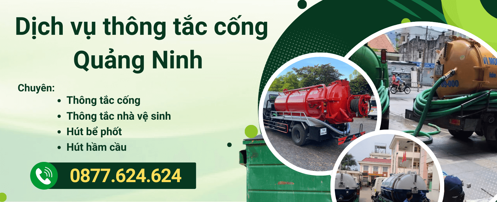 - Hút bể phốt tại nhà hàng, khách sạn và các khu vực Hạ Long, Cẩm Phả, Uông Bí, Móng Cái… thuộc tỉnh Quảng Ninh.